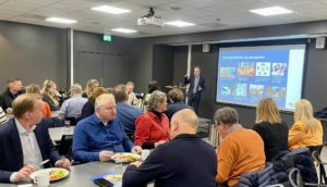 Under lunsjen vil hver bedrift få mulighet til å presentere seg i løpet av ett minutt, og formidle det mest vesentlige om sin bedrift. En fra virksomheten får anledning til å presentere, men vi synes det hadde vært veldig hyggelig om flere kollegaer kommer sammen på lunsjen.